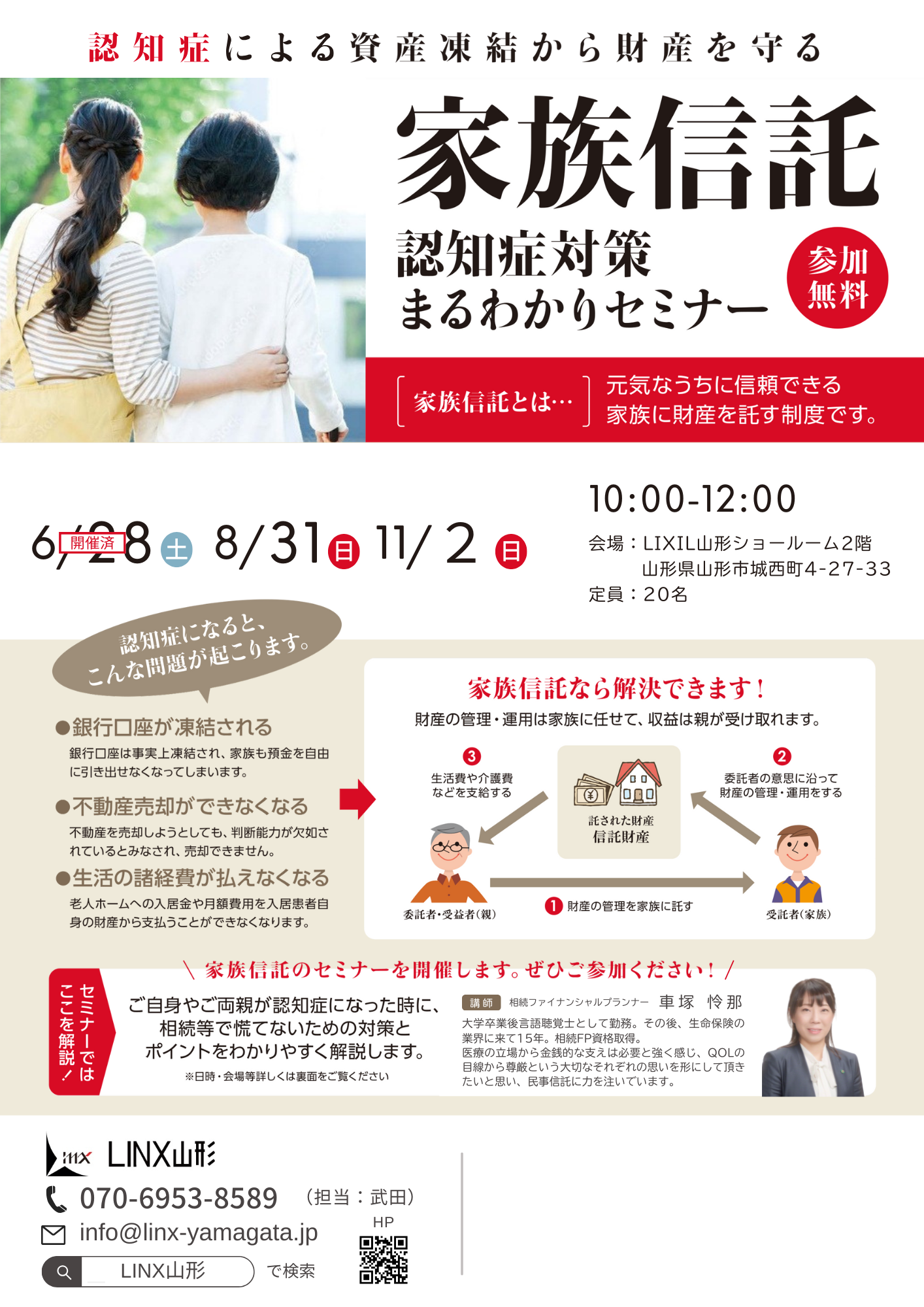 2025/06/09 認知症による資産凍結から財産を守る! 「家族信託」認知症対策まるわかりセミナー 6月28日(土)にLINX山形初の「家族信託セミナー」を開催します。 例えば大切な家族が認知症になったら。。 貯金や土地家屋など、その人名義 […]